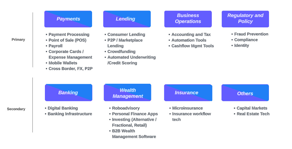 As I see it, the primary functions of fintech are largely industry agnostic, while the secondary layers focus on industry specific applications.