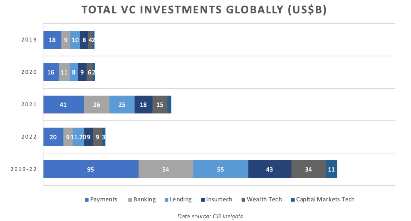 While the high projected CAGR could explain the funding for digital banking, I am surprised that the strong growth potential of insurtech is not attracting more investments.